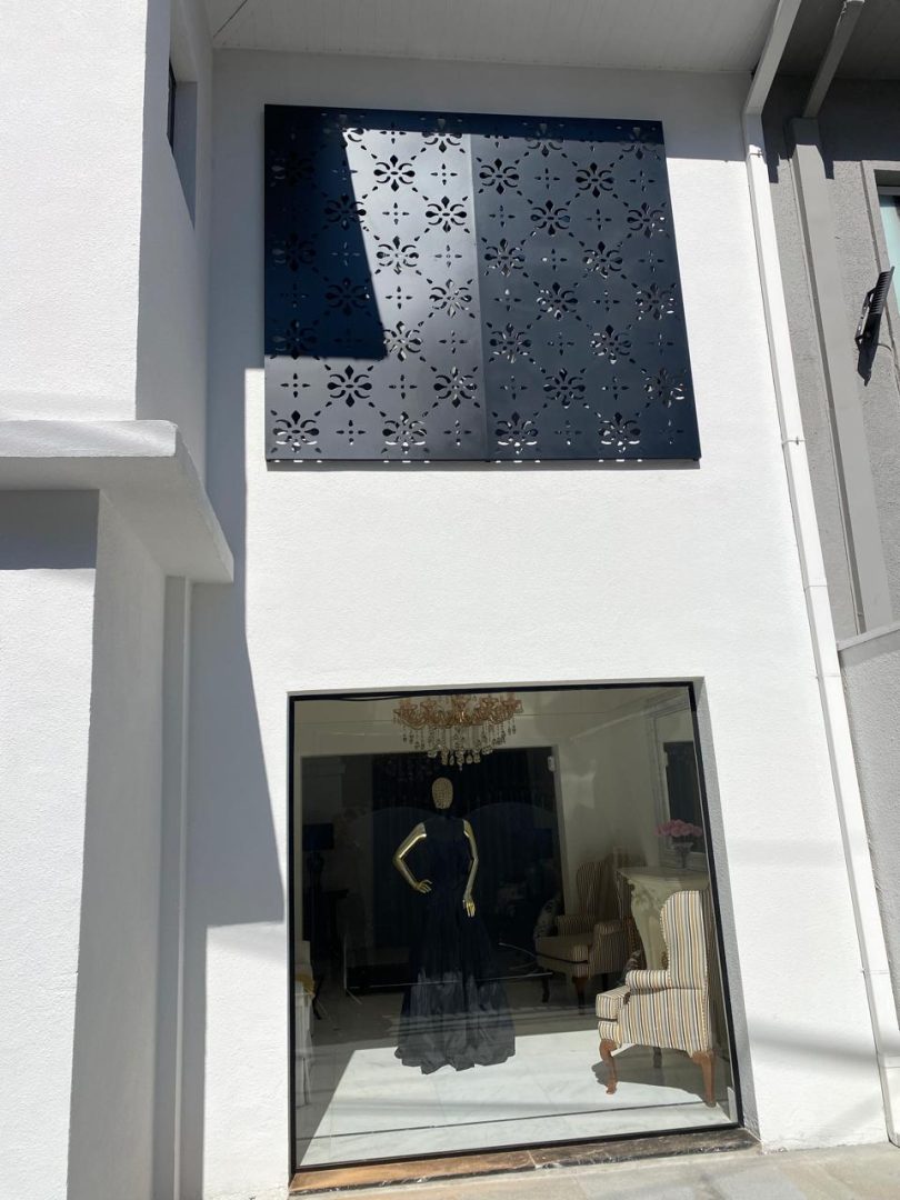 Home Projetos Brise Brise para loja de roupas – Design Brise para loja de roupas – Design Aplicados como brise, os painéis perfurados em alumínio ocultam janelas com leveza, garantem conforto térmico e reforçam a identidade visual do espaço comercial.