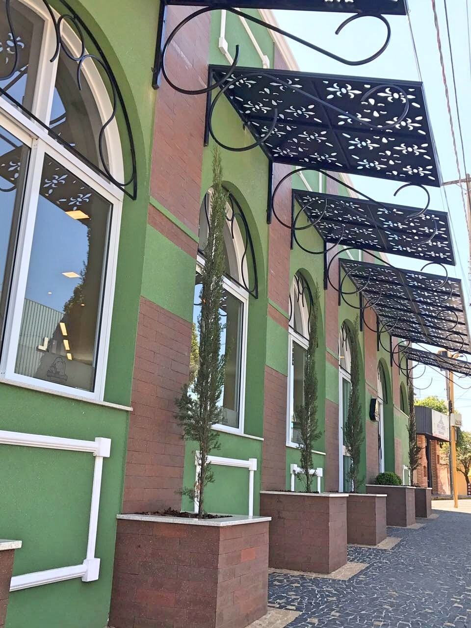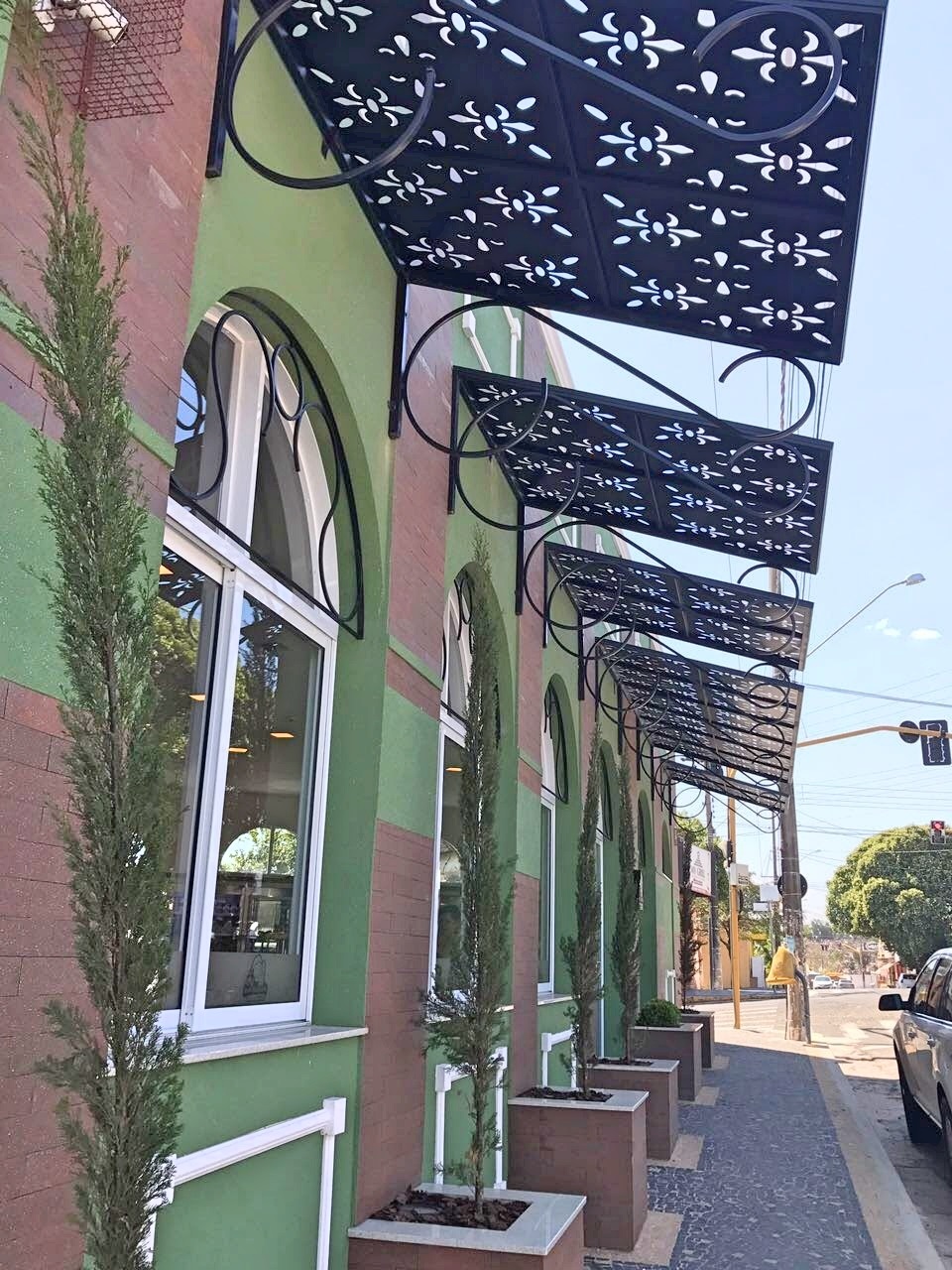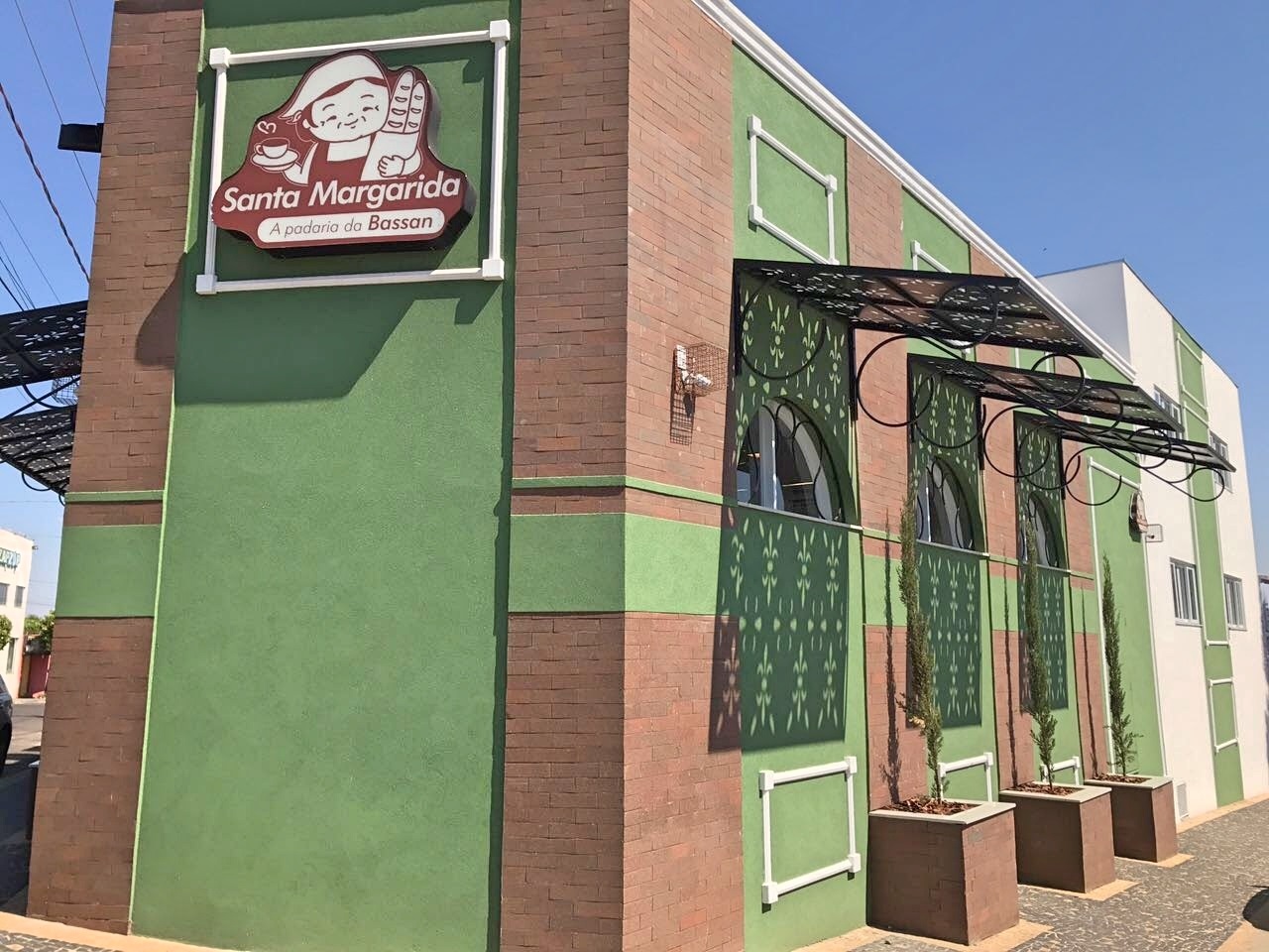 Fachada de padaria Santa Margarida na cidade de Lins está de Casa Nova e repaginada no projeto do Arquiteto @luizotaviofoggetti e os desenhos 3D da @designer.carol.marques. Painel design Lis utilizado na cobertura externa dando um charme especial.