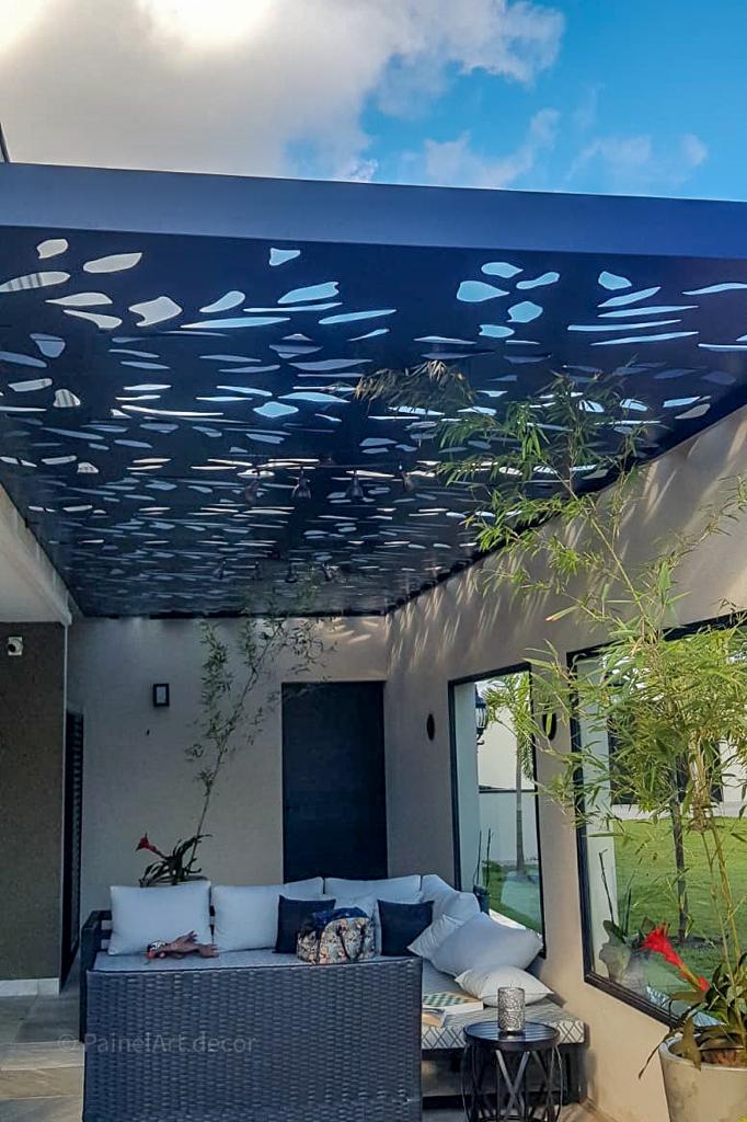Painel Perfurado em Cobertura feito em alumínio, que garante mais durabilidade e qualidade acima da média. O design escolhido foi o Alpinea, na cor Preto. A instalação é de nosso parceiro em Olimpia/São Paulo.