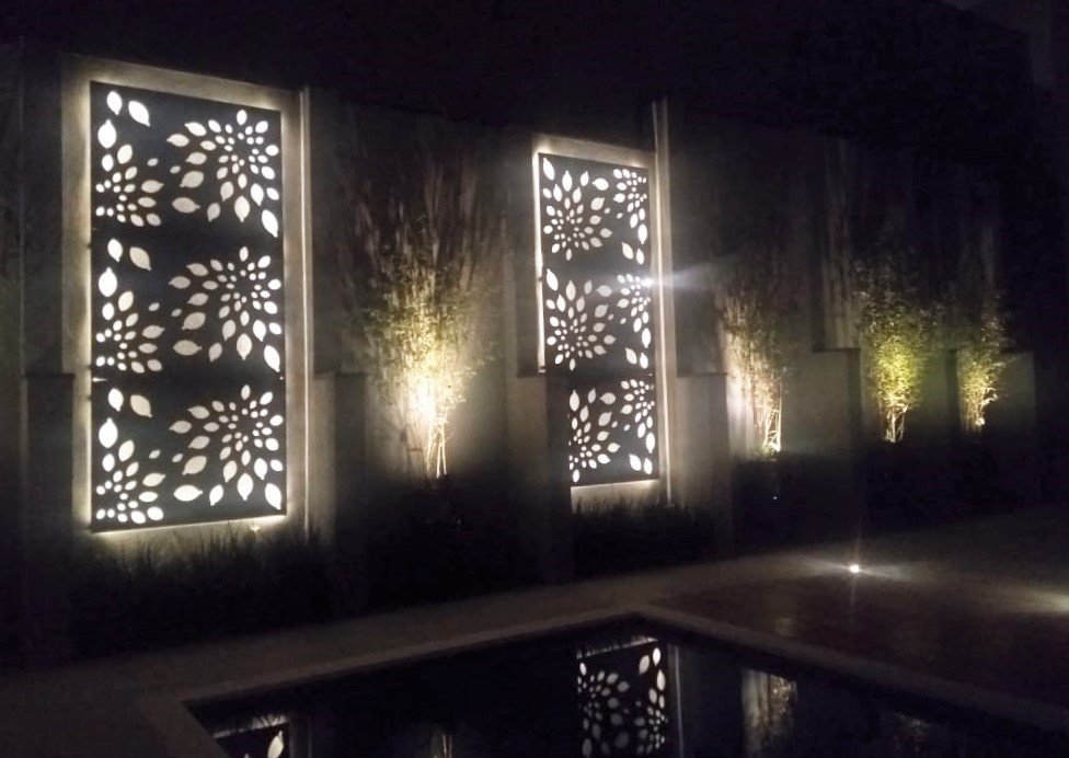 Home Projetos Decorativo Siciliano Fita LED Siciliano Fita LED Painéis Decorativos de parede, bordas dobradas com iluminação fita LED. Pintura eletrostática poliéster resistente ao tempo na cor Preto.
